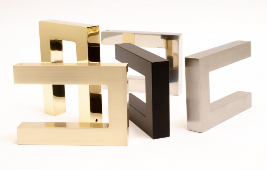 Edelstahl matt, Edelstahl poliert, Messing matt, Messing poliert, schwarz