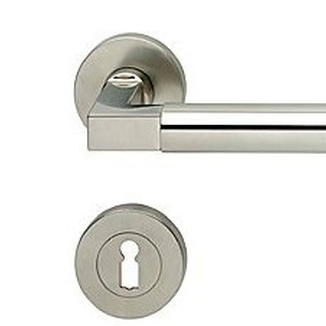 Drückerrosettengarnitur mit unsichtbar verschraubten zweiteiligen Überschraubrosetten. Der Drücker 1920 ist 112 mm lang, die Handhabe hat einen Durchmesser von 20 mm. Die Rosetten sind 50 mm im Durchmesser und ca. 7 mm hoch. Die Garnitur ist ebenso lieferbar als Feuerschutzgarnitur in Edelstahl matt gebürstet oder spiegelglanz poliert. inkl. MwSt, zzgl. Versandkosten Versandkostenfrei in folgende Länder: Mehr anzeigen Weniger anzeigen
