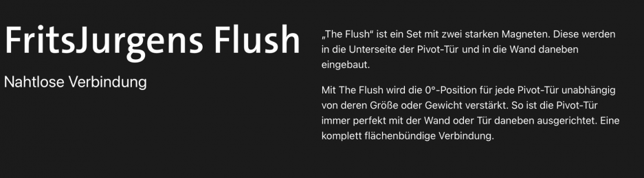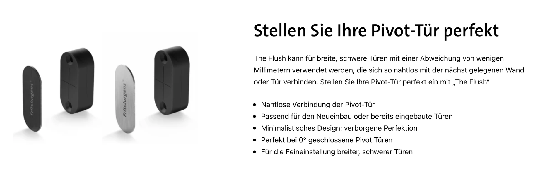 „The Flush“ ist ein Set mit zwei starken Magneten. Diese werden an der Unterseite der Pivot Tür und an der angrenzenden Wand montiert. Mit The Flush wird die 0°-Position für jede Pivot Tür unabhängig von deren Größe oder Gewicht verstärkt. Bitte stellen Sie alle Fragen VOR dem Kauf per MAIL! Umtausch oder Rücknahme sind nicht möglich. inkl. MwSt, zzgl. Versandkosten Versandkostenfrei in folgende Länder: Mehr anzeigen Weniger anzeigen