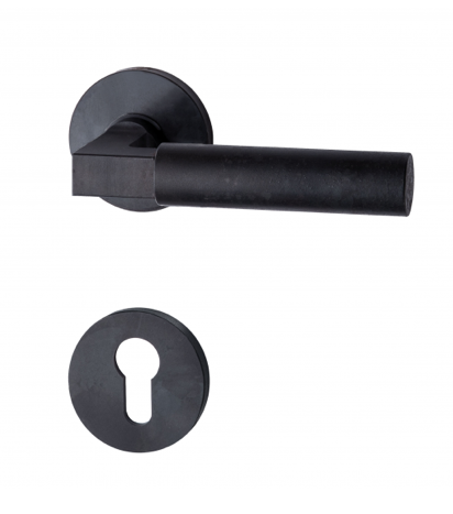 HALCÖ BAUHAUS Drücker-Rosettengarnitur im Design nach Adolf Meyer im Privataltelier von Walter Gropius 1922 oder 1923 gezeichnet. Mit runden unsichtbar verschraubten Rosetten. Hier bieten wir Ihnen die Garnitur in der außergewöhnlichen Oberfläche: schwarzSTAHL Lieferumfang : 1 Paar 125 mm lange Drücker mit 21 mm runder Handhabe sowie einem Paar Drücker- und optional Schlüsselrosetten Bbt. oder PZ gelocht bzw. einem Paar WC-Bad Rosetten in der gewünschten Oberfläche. runde Rosetten : 52 x 7 mm Bitte wählen Sie im pulldownmenu Ihre gewünschte Schlüssel- oder WC/Bad Rosette Die gewünschte Anzahl Ihrer Garnituren können Sie oben rechts im Warenkorb einstellen. Unsichtbar verschraubt mit integrierter Hochhaltefeder, Vierkant 8 x 8 mm für 38 bis 45 mm starke Türen und einen Sechskantschlüssel. inkl. MwSt, zzgl. Versandkosten Versandkostenfrei in folgende Länder: Mehr anzeigen Weniger anzeigen