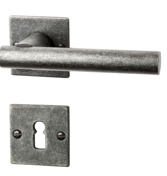 FÜGEN Drücker-Rosettengarnitur mit quadratischen sichtbar verschraubten Rosetten in der außergewöhnlichen Oberfläche: schmiedeEISEN schwarz passiviert. Lieferumfang : 1 Paar 125 mm lange Drücker sowie einem Paar Drücker- und optional Schlüsselrosetten BB oder PZ gelocht bzw. einem Paar WC-Bad Rosetten in der gewünschten Oberfläche. Rosetten : 52 x 52 x 3 mm Bitte wählen Sie im pulldownmenu Ihre gewünschte Schlüssel- oder WC/Bad Rosette oder auch ohne Schlüsselrosetten NSB Die gewünschte Anzahl Ihrer Garnituren können Sie oben rechts im Warenkorb einstellen. Da sichtbar verschraubt bekommen Sie Linsen-Senkkopf-Holzschrauben mit Schlitz geliefert, ebenso den Vierkant 8 x 8 mm für 38 bis 45 mm starke Türen und einen Sechskantschlüssel. inkl. MwSt, zzgl. Versandkosten Versandkostenfrei in folgende Länder: Mehr anzeigen Weniger anzeigen