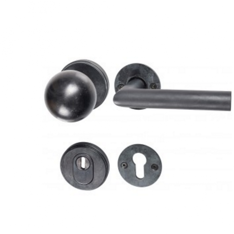HALCÖ Sicherheitswechselgarnitur in schwarzSTAHL in dieser unverwechselbaren rustikalen Oberfläche mit dem „nie gleichen“ Finish. Für den Einsatz im Außenbereich (z.B. Hauseingang) haben wir eine spezielle witterungsbeständige Oberfläche entwickelt: schmiedeEISEN verzinkt schwarz patiniert. Diese kombinieren wir dann im Innenbereich mit schwarzSTAHL. Bitte wählen Sie im Pulldown-Menü ihre entsprechende Variante. Abgebildet ist die Garnitur komplett in schwarzSTAHL. Die Durchgangsbohrungen sind bei 38 mm nach DIN. Wir liefern die Garnitur komplett mit feststehendem Kugelknopf außen mit Kernziehschutzrosette und Innen mit dem Drücker DAVOS. Als Drücker / Drückergarnitur (beidseitig drehbare Klinke) wäre das preisgleich genauso wie die Variante außen mit drehbarem Knopf. Bitte unter Bemerkungen angeben. Der Drücker ist links / rechts verwendbar. Die Befestigungsmaterialien sind für eine Türstärke von 76 mm beigelegt. Der Vierkant wie auch die Schrauben sind kürzbar. inkl. MwSt, zzgl. Versandkosten Versandkostenfrei in folgende Länder: Mehr anzeigen Weniger anzeigen