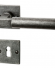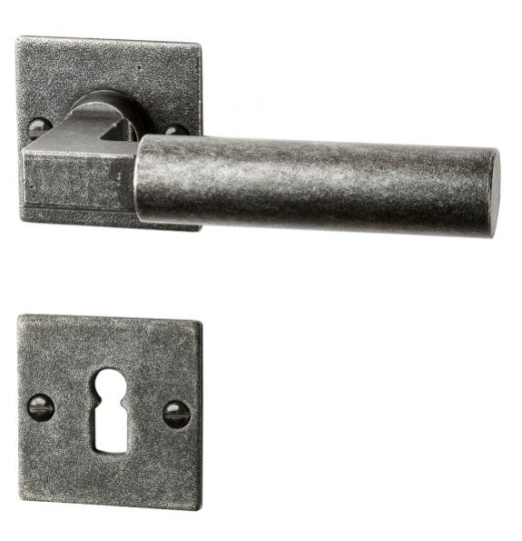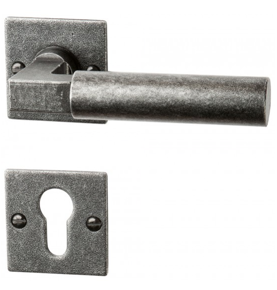 ZERMATT Drücker-Rosettengarnitur im Design nach Adolf Meyer im Privataltelier von Walter Gropius 1922 oder 1923 gezeichnet. Diese Variante mit der sichtbaren Verschraubung ist der wirkliche Klassiker unter den „Gropius“-Klinken. Hier bieten wir Ihnen die Garnitur in der außergewöhnlichen Oberfläche: schmiedeEISEN schwarz passiviert Lieferumfang : 1 Paar 125 mm lange Drücker mit 21 mm runder Handhabe sowie einem Paar Drücker- und optional Schlüsselrosetten Bbt. oder PZ gelocht bzw. einem Paar WC-Bad Rosetten in der gewünschten Oberfläche. Rosetten : 52 x 52 x 3 mm Bitte wählen Sie im pulldownmenu Ihre gewünschte Schlüssel- oder WC/Bad Rosette oder auch ohne Schlüsselrosetten NSB Die gewünschte Anzahl Ihrer Garnituren können Sie oben rechts im Warenkorb einstellen. Da sichtbar verschraubt bekommen Sie Linsen-Senkkopf-Holzschrauben mit Schlitz geliefert, ebenso den Vierkant 8 x 8 mm für 38 bis 45 mm starke Türen und einen Sechskantschlüssel. inkl. MwSt, zzgl. Versandkosten Versandkostenfrei in folgende Länder: Mehr anzeigen Weniger anzeigen