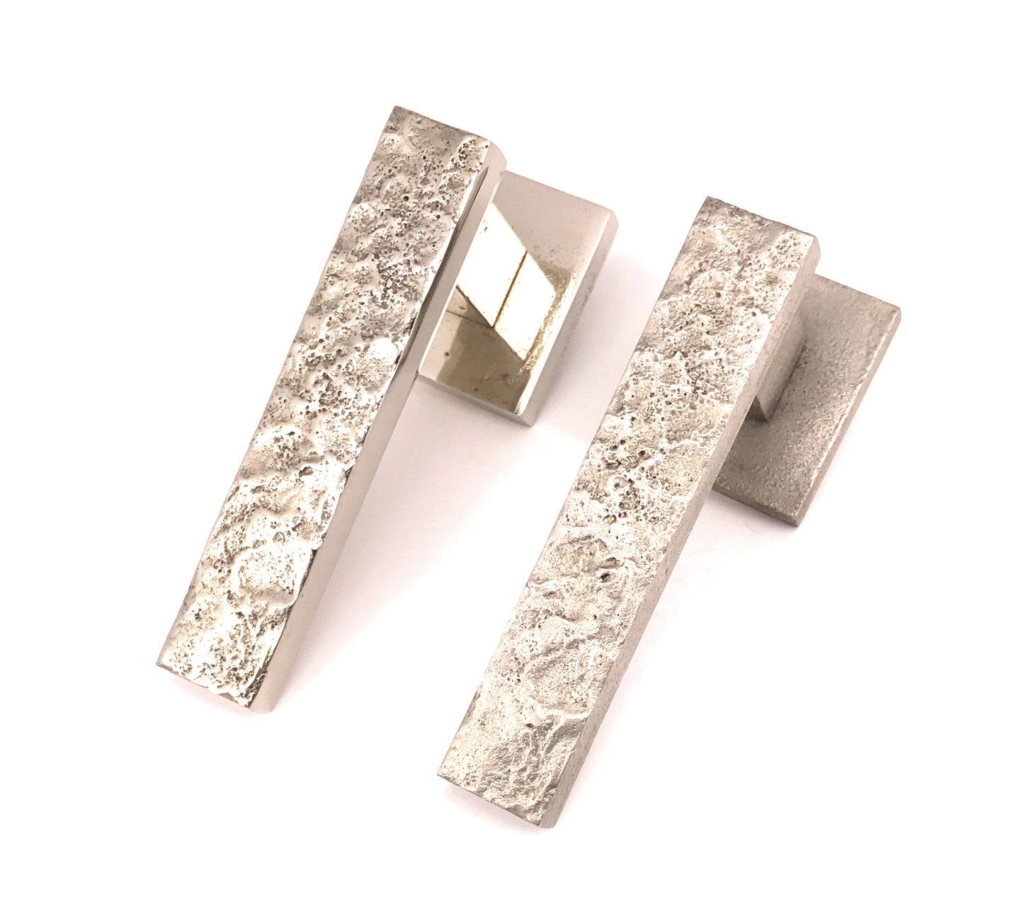 Drückergarnituren des exklusiven spanischen Labels OLARIA aus Barcelona und hier haben Sie auch dieses Design gleich BARCELONA getauft. Die ca. 130 x 24 x 13 mm Drücker sind fest drehbar auf den quadratischen 50 x 50 x 10 mm Rosetten mit Hochhalte- Rückstellfeder befestigt. Befestigung auf der Tür mittels Durchgangsverschraubung bei 38 mm. Das Material ist Weißbronze WB und die Finishes sind poliert – oben links und matt – rechts daneben. Bitte wählen Sie im pulldownmenu das Finish und welche Rosetten Sie haben möchten. NSB = ohne Schlüsselrosetten BB = mit den klassischen BB Buntbart Schlüsselrosetten WC/Bad = innen mit Knebel auf der Rosette und außen mit Notöffnungsschlitzscheibe. PZ ist mit PZ Profilzylinder gelochten Schlüsselrosetten UMTAUSCH oder RÜCKNAHME sind nicht möglich, Es handelt sich hier immer um Anfertigungen mit ca. 6 – 8 Wochen Lieferzeit Bitte nicht bestellen wenn Sie damit nicht eiverstanden sind. inkl. MwSt, zzgl. Versandkosten Versandkostenfrei in folgende Länder: Mehr anzeigen Weniger anzeigen