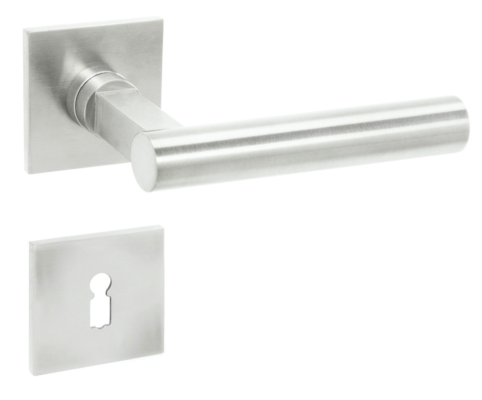 BAUHAUS Drücker-Rosettengarnitur. Dieser Drücker zählt zu den absoluten Klassikern. Hier kombinieren wir ihn mit besonders flachen unsichtbar verschraubten Rosetten. Die neuen quadratischen Rosetten sind 52 x 52 mm groß und nur 5 mm stark. In den Drückerrosetten ist eine hochwertige Hochhaltefeder aus Metall integriert. Bitte wählen Sie im pulldownmenu Ihre gewünschte Oberfläche und Schlüssellochung Die gewünschte Anzahl Ihrer Beschläge können Sie im Warenkorb einstellen. Lieferumfang : 1 Paar Drücker mit 1 Paar Drücker-Rosetten 52 x 52 x 5 mm mit integrierter Hochhaltefeder – NSB ohne Schlüsselrosetten, mit Schlüsselrosetten BB, Profilzylinder PZ oder mit WC-Badrosetten mit Knebel und Notöffnung außen. Komplett mit Befestigungsmaterial. inkl. MwSt, zzgl. Versandkosten Versandkostenfrei in folgende Länder: Mehr anzeigen Weniger anzeigen