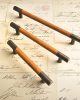Leder ummantelter runder Griff mit sichtbarer Naht (stich out) auf rechteckiger Grundleiste. Sie haben die Wahl zwischen sechs verschiedenen Lederfarben sowie sieben verschiedenen Oberflächen der Sockel. Hier ist der Link zu diesem Produkt bei Turnstyle, Sie können sich dort ein Bild der verschiedenen machbaren Kombinationen machen. Folgende Größen sind verfügbar: Durchmesser Handhabe 18 mm Bautiefe 25 mm Bohrabstand Grifflänge ca. 64 mm 101 mm 128 mm 165 mm 160 mm 196 mm Es handelt sich bei allen Varianten um Sonderanfertigungen! Umtausch oder Rücknahme sind ausgeschlossen. Nach Ihrem Einkauf senden wir Ihnen eine dementsprechende Vereinbarung zu. Bitte haben Sie dafür Verständnis, alle Griffe werden von Hand gefertigt und sind Unikate für Sie gemacht. Im pulldownmenu finden Sie die entsprechenden Größen mit den Lederfarben. Bitte geben Sie die gewünschte Obefläche der Sockel im Feld „Bemerkungen“ an. Folgende Oberflächen stehen zur Verfügung: BC Chrom poliert SN matt vernickelt (Am Startbild zu sehen) PN Nickel poliert PU Messing poliert Weitere Sonderoberflächen in Antik und Vintage können wir Ihnen separat anbieten. Schreiben Sie uns gerne an. inkl. MwSt, zzgl. Versandkosten Versandkostenfrei in folgende Länder: Mehr anzeigen Weniger anzeigen